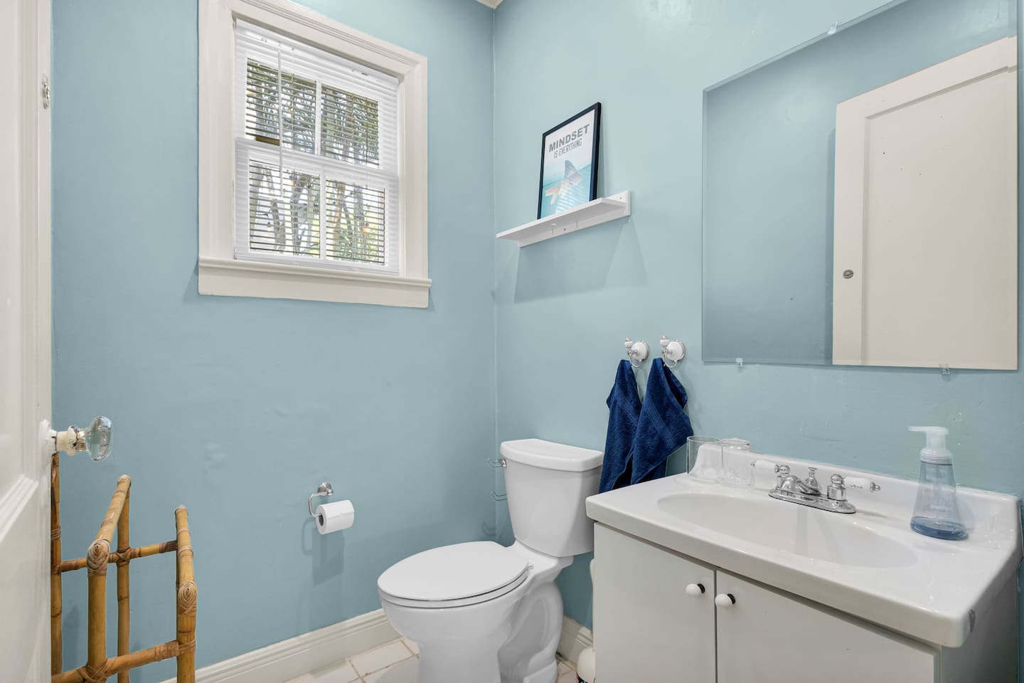 The Palm Twenty-Eight Main House works especially well for families or groups of friends who want to stay close to one another yet still have plenty of areas to spread out across around the property. The four-bedroom Main House includes two bathrooms upstairs and a half bath on the ground floor.