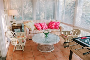 The home is designed with connection to each other and nature in mind, as you gather together for meals, hushed conversation, games or just spending quality time together. As you explore the property, you'll find cozy corners, a modern kitchen, well-equipped bedrooms and a sunroom which features a multi-game table that includes foosball, billiards and other games.