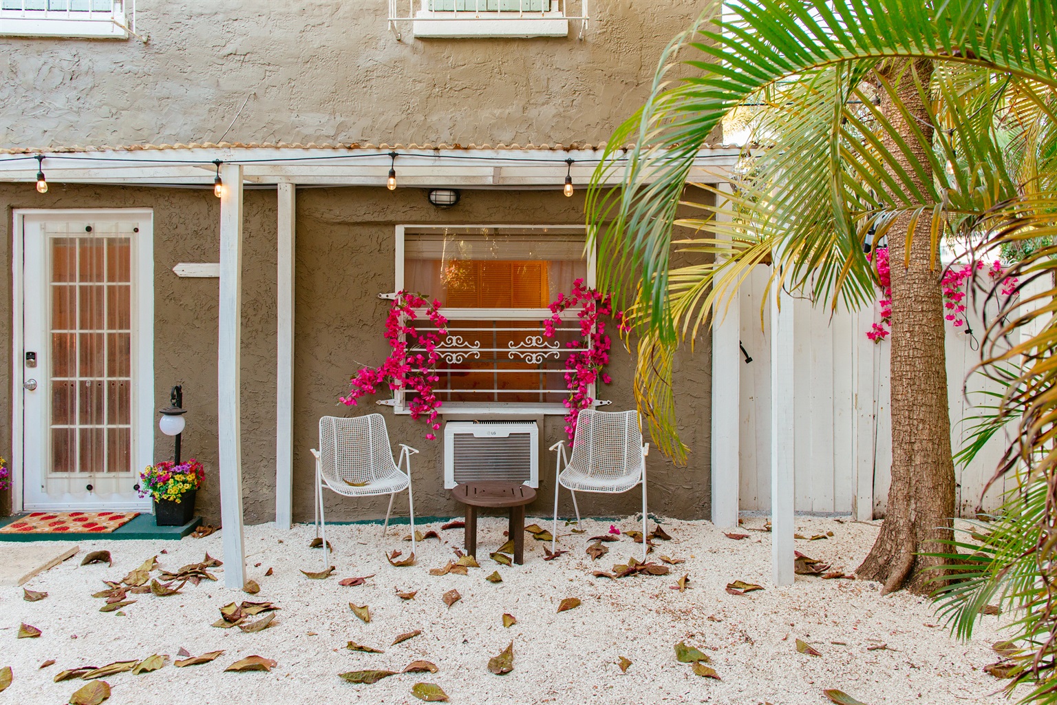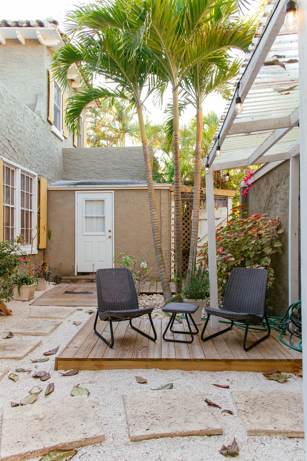 The Studio is one of three units that make up the stays at Palm Twenty-Eight. Once inside, you'll find the studio has all the essentials that will make your worries disappear at the door while you take in the peaceful tropical surroundings, lush garden, shared courtyard amenities and all the vibrancy West Palm Beach has to offer. The Studio itself has a comfortable bed, a reading nook, dining counter and your very own private outdoor patio area, complete with reclining chairs and a small cafe table - just perfect for morning coffee or a sip of wine in the evening.