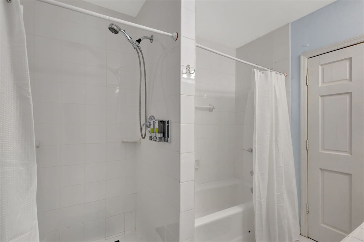 Bathroom with bathtub and shower