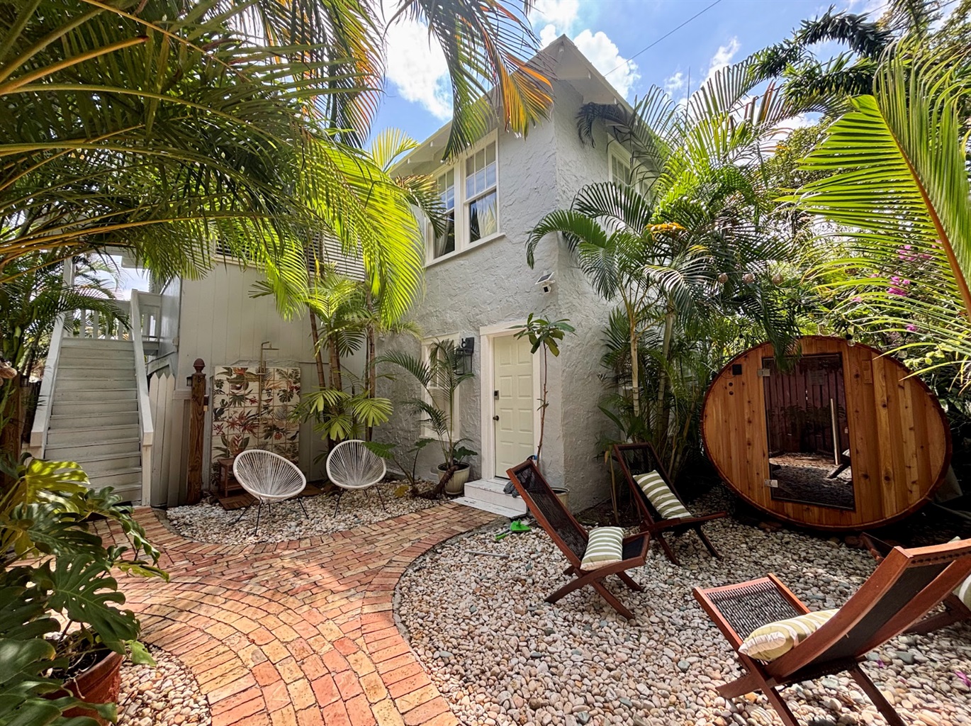Once inside the pink "Flamingo Gate" off of Spruce Street, tropical charm awaits.
