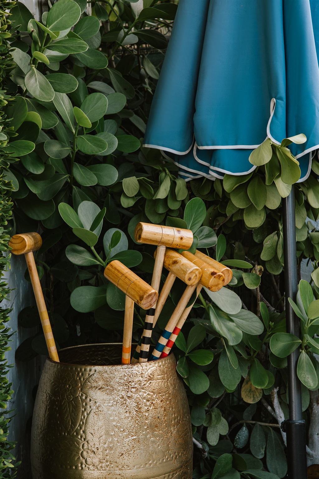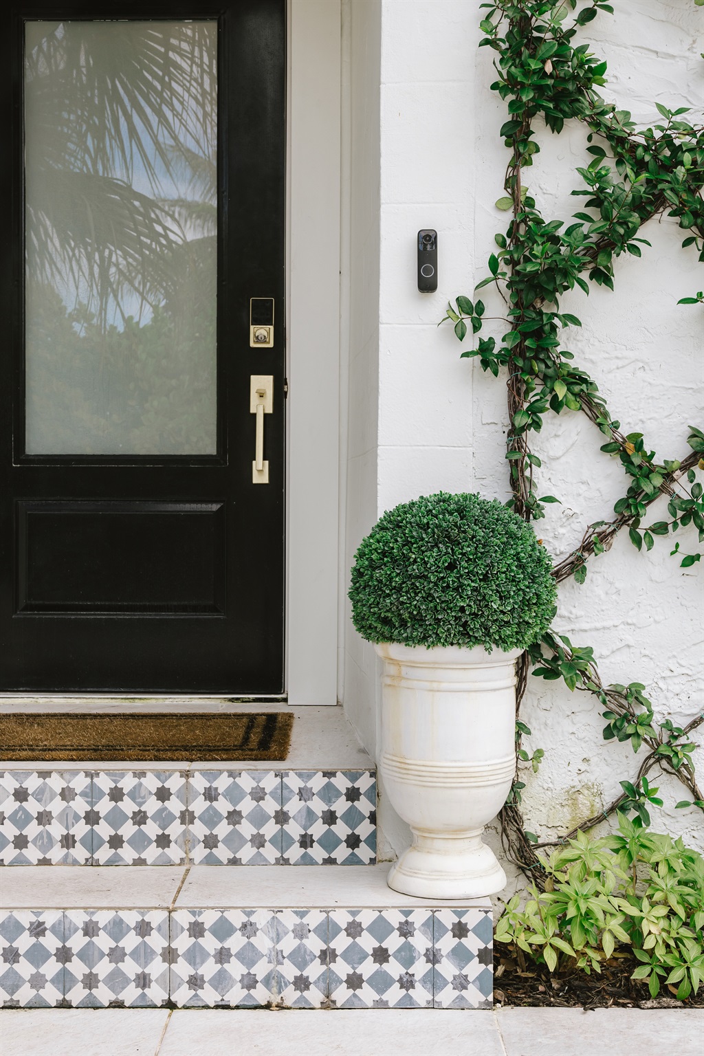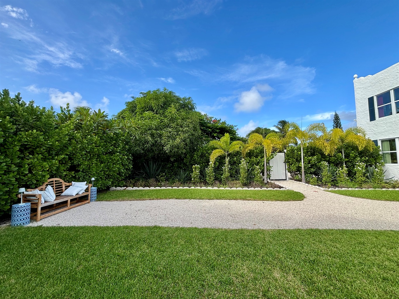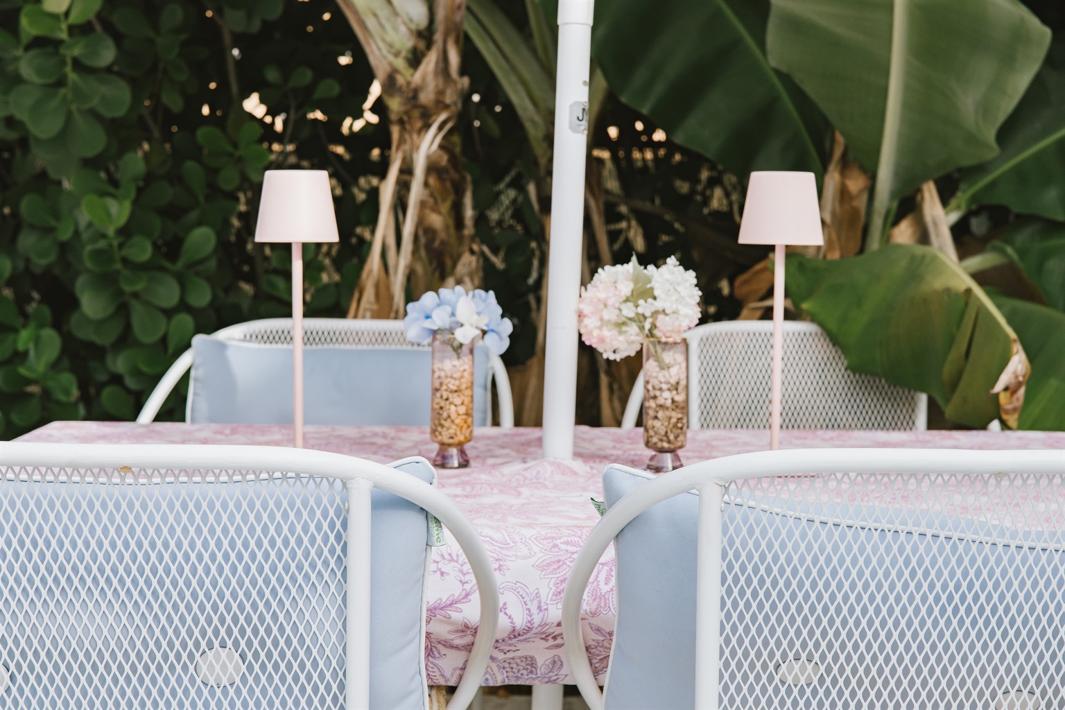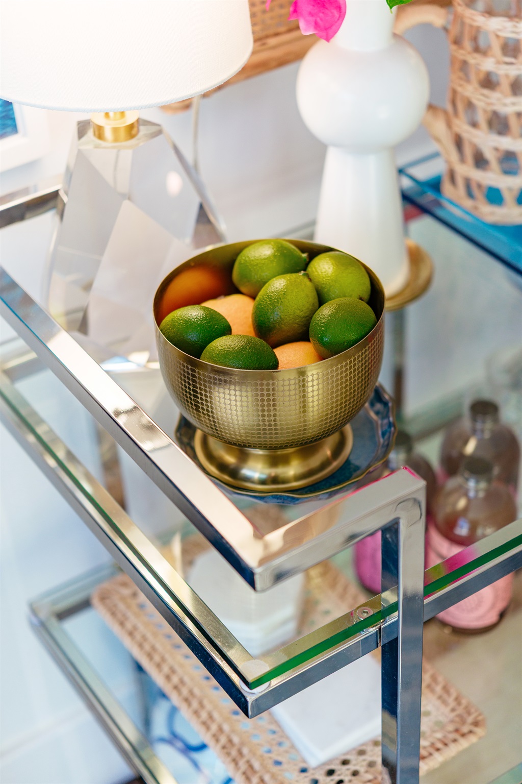 As you enter the cottage, you're greeted with an accent wall that highlights Palm Beach vibes.