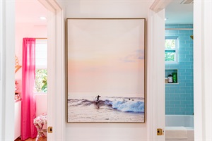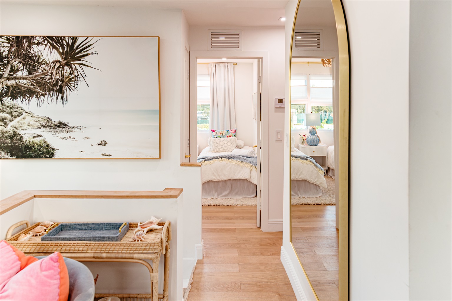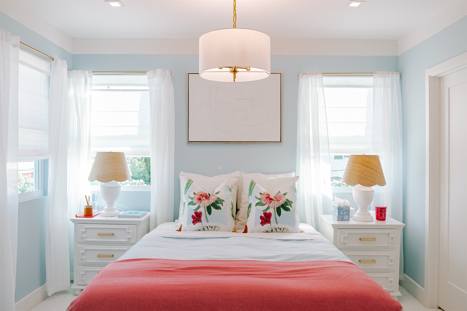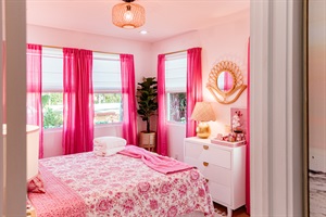 The third bedroom has themes of Palm Beach in pink and red, a stylish and fun way to be immersed in the local culture.